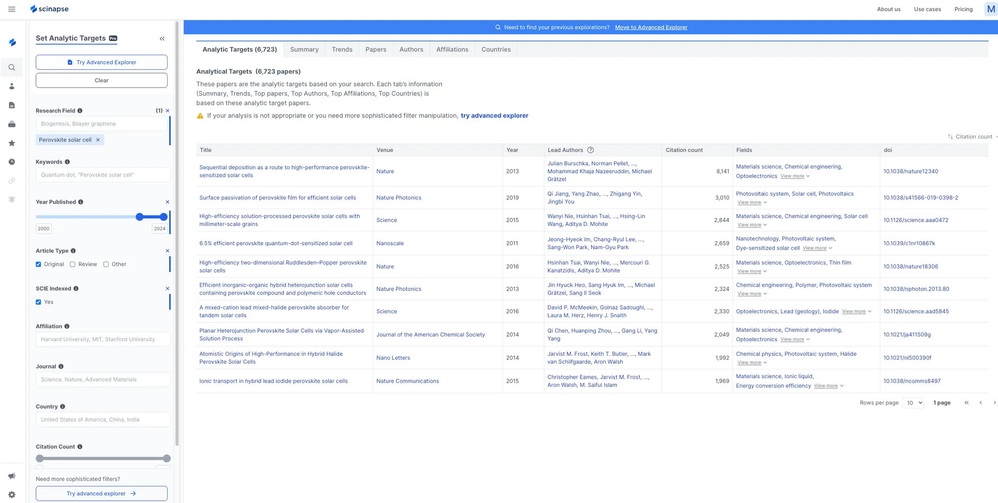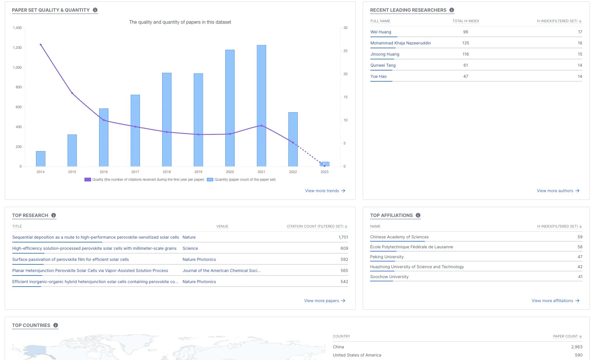 With Research Intelligence, you can understand the latest trends in specific fields and identify current leading researchers. We offer analysis results specific to your needs using our unique calculation methods and filters.