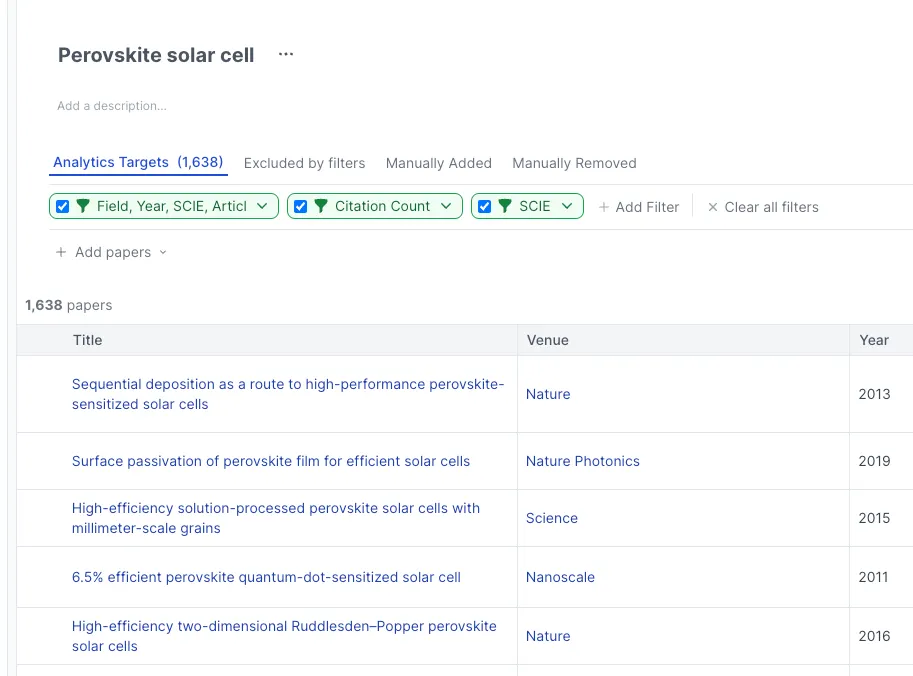 This enables you to quickly identify research trends in a specific field and determine which researchers are influential, without the need to read each paper individually.