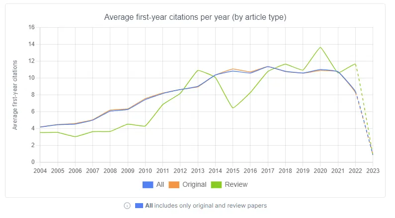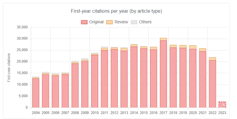 Our professional research tool allows you to check the first-year citation counts by article type (review & original), making it possible to see which articles types receive the most citations.
