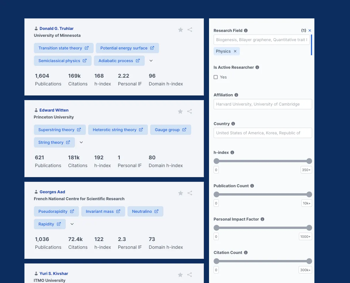 Quickly assess and analyze any researcher's academic achievements, expertise, and impact without the hassle.